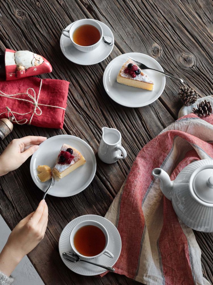 테이블 매트: 컵·디저트 접시 밑에 레이어드해 색 포인트와 소음·스크래치 방지.