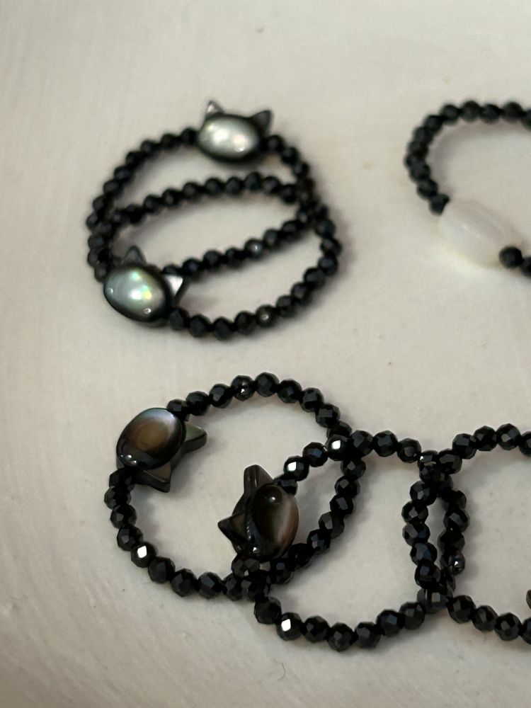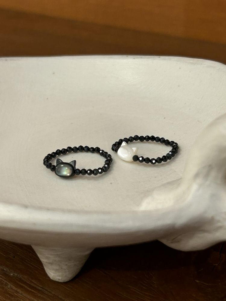- 빛과 어둠, 서로 다른 두 감성이 하나의 형태로 완성된 블랙 캣 자개. 고요한 밤의 검은 고양이와 은은하게 빛나는 하얀 고양이 두가지 컬러로 제작되었습니다. 손끝에 닿는 빛에 따라 잔잔하게 반짝이는 자개의 결을 따라 눈길이 가는 반지입니다.