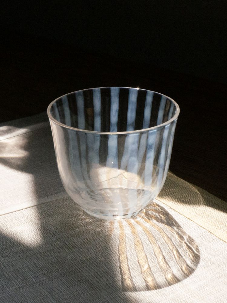 Taisho Roman 시리즈는 일본 유리 공예의 전통을 현대적으로 풀어낸, 히로타 글라스만의 감성을 담은 컬렉션입니다. 고운 오팔빛 유백 패턴은 ‘아부리다시’라 불리는 독자적인 기법을 통해 유리 표면 위에 은은히 번져 나옵니다. 유리를 고온에서 가열한 뒤 서서히 식히는 과정을 거치며, 자연스럽고 섬세한 무늬와 부드러운 색감이 천천히 스며들듯 완성됩니다.