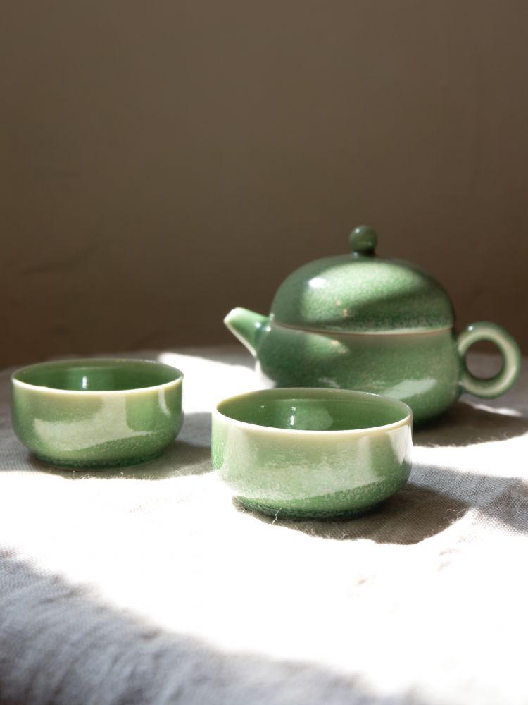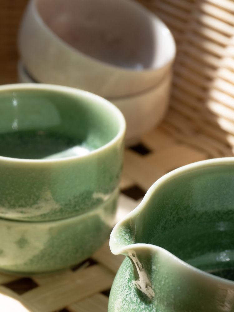 - 비취색 청자의 고요한 아름다움이 떠오르는 초록빛 유약의 작은 다구입니다.
