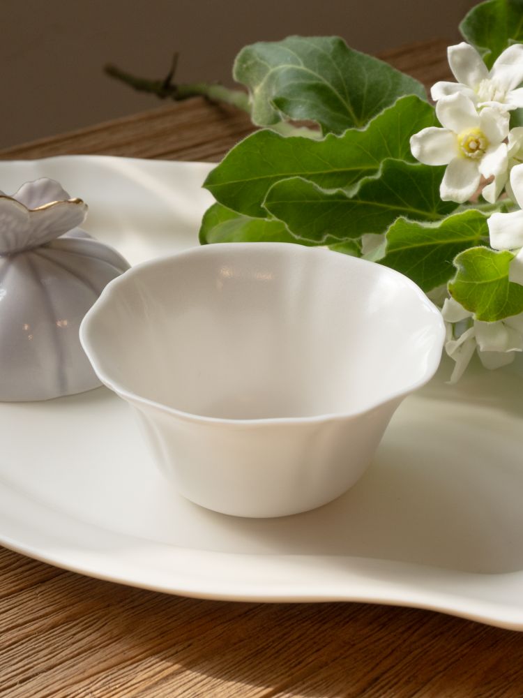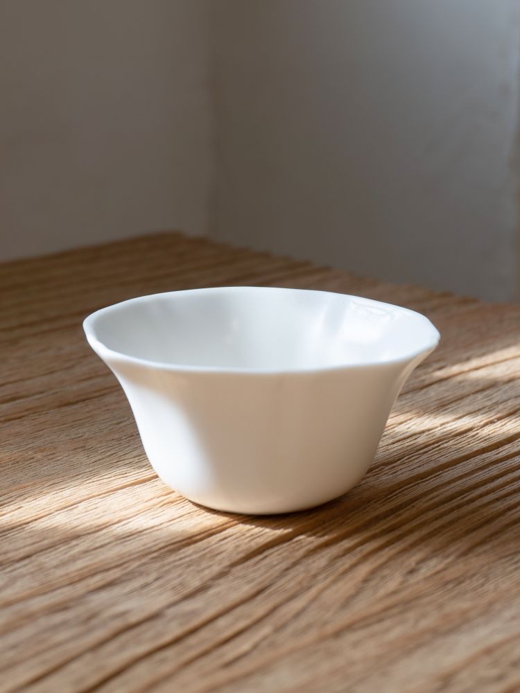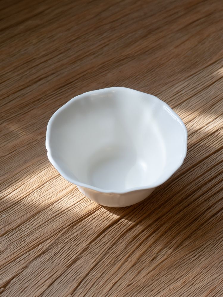 - 잎의 끝을 닮은 유려한 곡선이 특징인 낮은 찻잔입니다. 와일드하게 열린 입구 덕분에 차를 넉넉히 머금고, 부드럽게 음미할 수 있으며, 여유로운 찻자리와 잘 어울립니다.