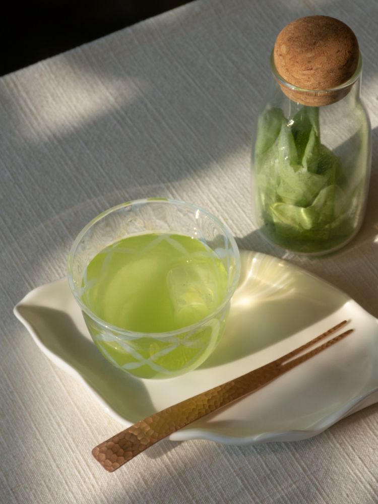 - 큐슈산 고급 녹차잎에 말차 가루를 더해 맑고 아름다운 연녹색 수색