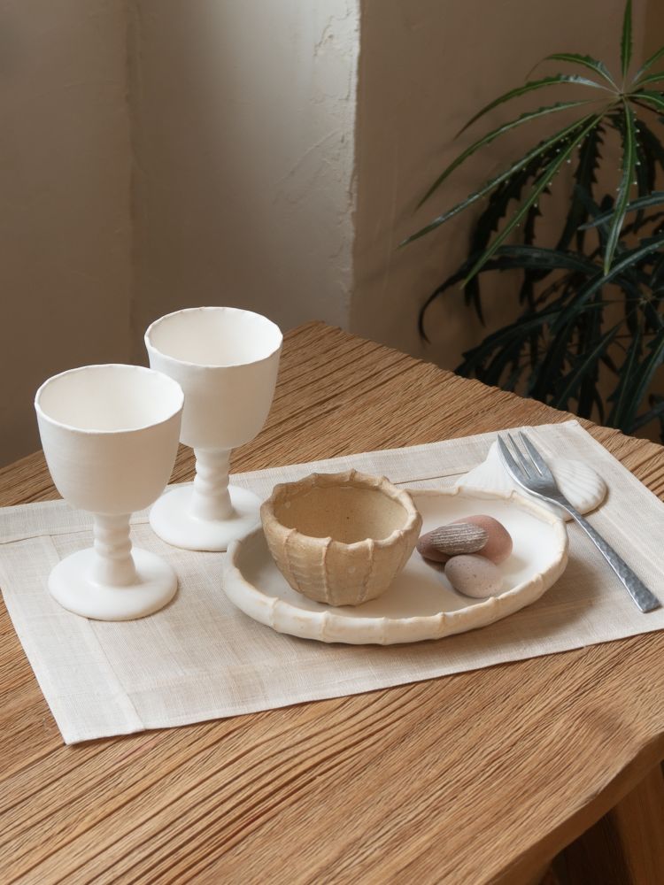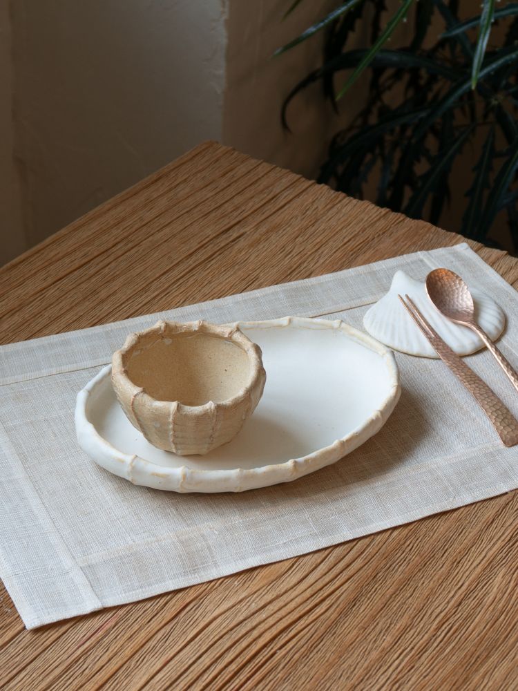 - 작가는 오랜 시간 파도에 씻기며 마모된 바닷가의 모래와 조개껍데기에서 영감을 받아 작업합니다. 거칠지만 부드러운 텍스처, 손으로 빚은 듯한 자연스러운 흔적이 물건 하나하나에 담겨 일상 속에서 조용히 스며들길 바라요. 색감 또한 자연에서 온 듯 은은하고 편안해, 남겨진 손의 결과 질감은 쓰는 이에게 따뜻한 사용감을 전합니다.