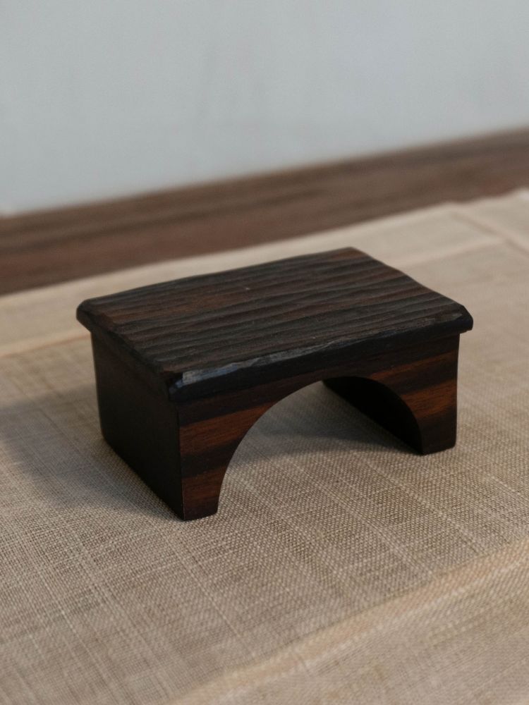 - 우드카빙으로 정성스럽게 깎아 만든 작은 굽접시로, 손 안에 들어오는 아담한 크기가 특징입니다. 네 개의 아치형 다리가 단정하게 받치고 있어, 마치 작은 조형물처럼 미학적인 균형미를 느낄 수 있습니다. 차와 함께 곁들이는 다식이나 작은 디저트를 올리기에 알맞으며, 작은 오브제로 두었을 때도 공간에 은은한 멋을 더해줍니다.