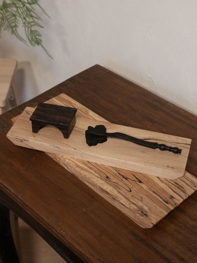 - 작가는 일상생활에 최적화된 목(木) 기물을 오브제부터 차 도구까지, 오롯이 두 손으로 빚어냅니다. 끌이 남긴 자국의 깊이와 크기는 저마다 다르기에, 목기물이 지닌 단 하나뿐인 희소성을 느껴보시길 바랍니다.