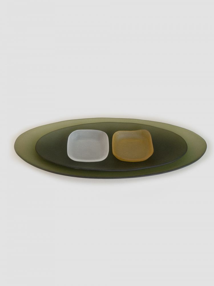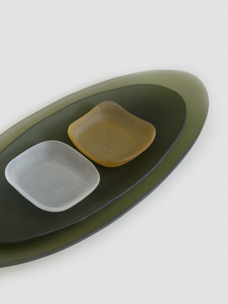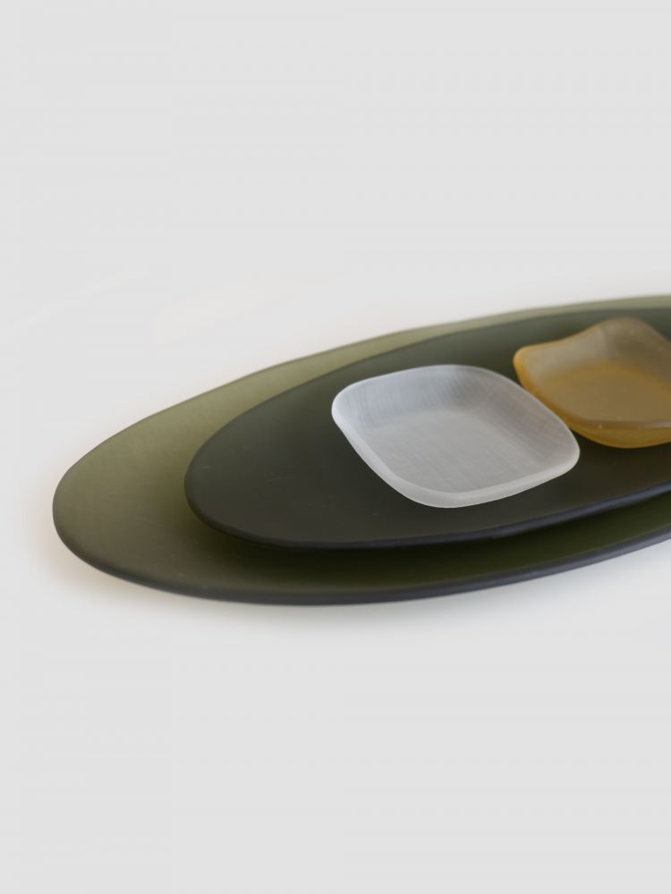 - 4명의 작가가 함께하는 dito140의 대표작 모시 플레이트는 한국 전통 직물인 모시천의 섬세한 질감을 유리 위에 담아냅니다. 비침과 결, 겹쳐짐이 만들어내는 깊이와 리듬은 동양적 미감과 현대적 감각을 동시에 보여주며, 시그니처로 자리 잡았습니다