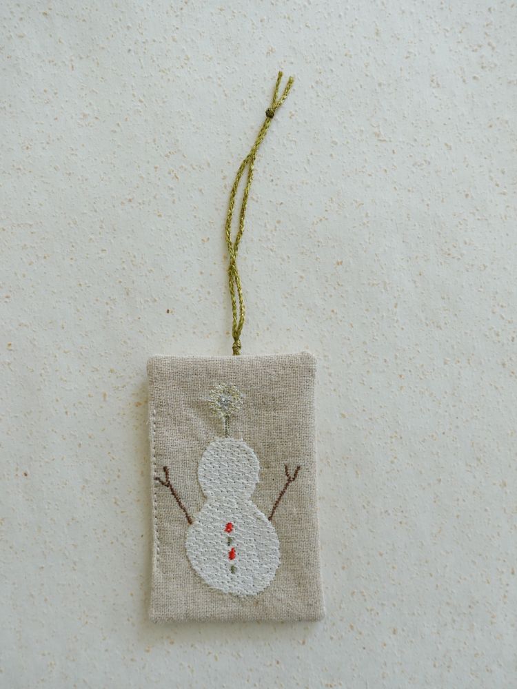 흰 눈이 동그랗게 쌓인 나무, 앙증맞게 그려진 귀여운 눈사람, 차분한 겨울빛을 담은 눈꽃 자수가 은은한 컬러감의 원단 위에 섬세하게 새겨져 있습니다.