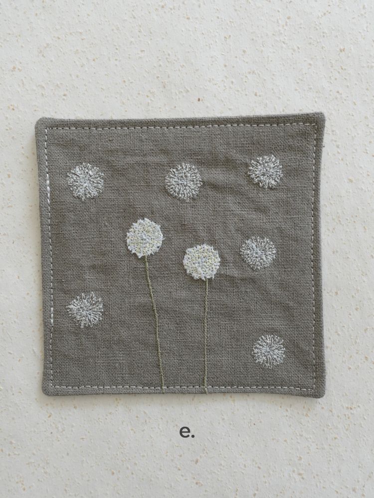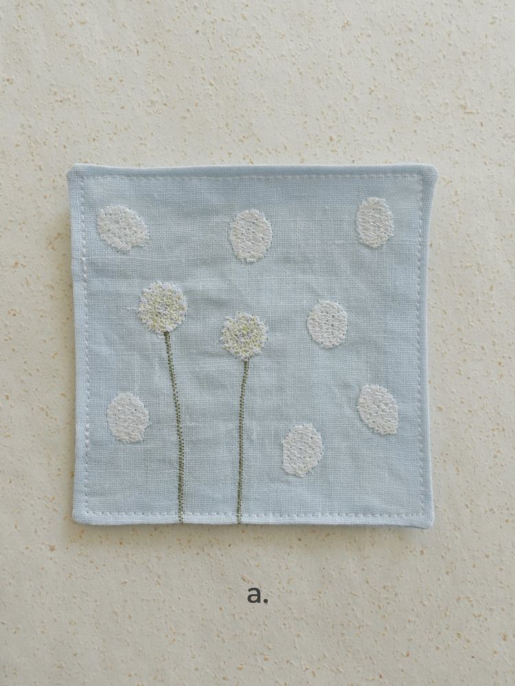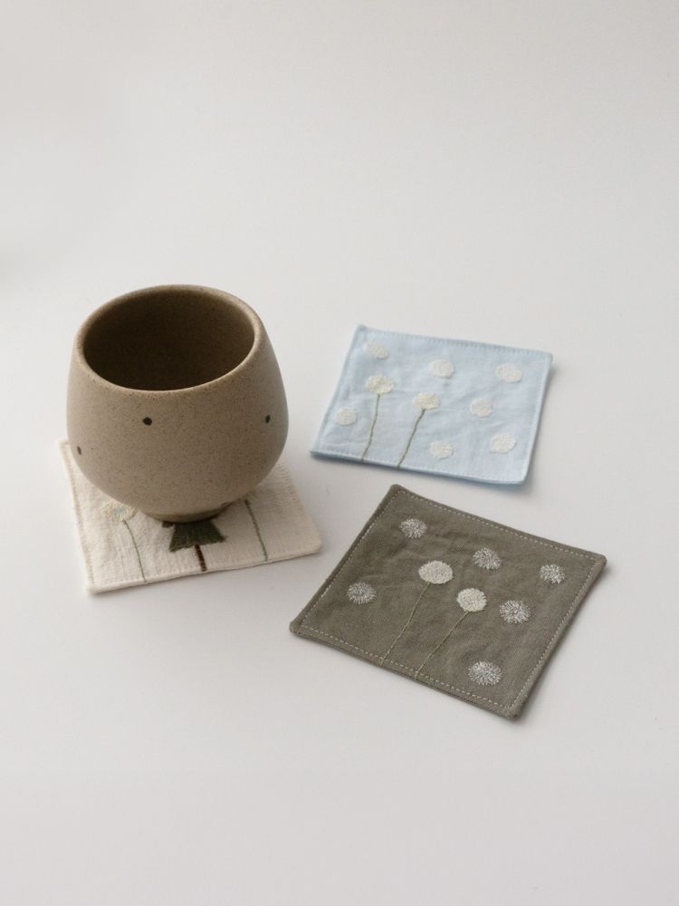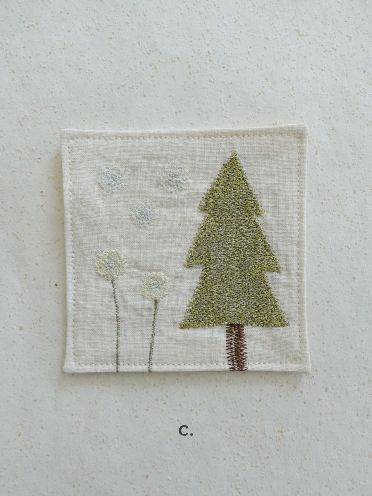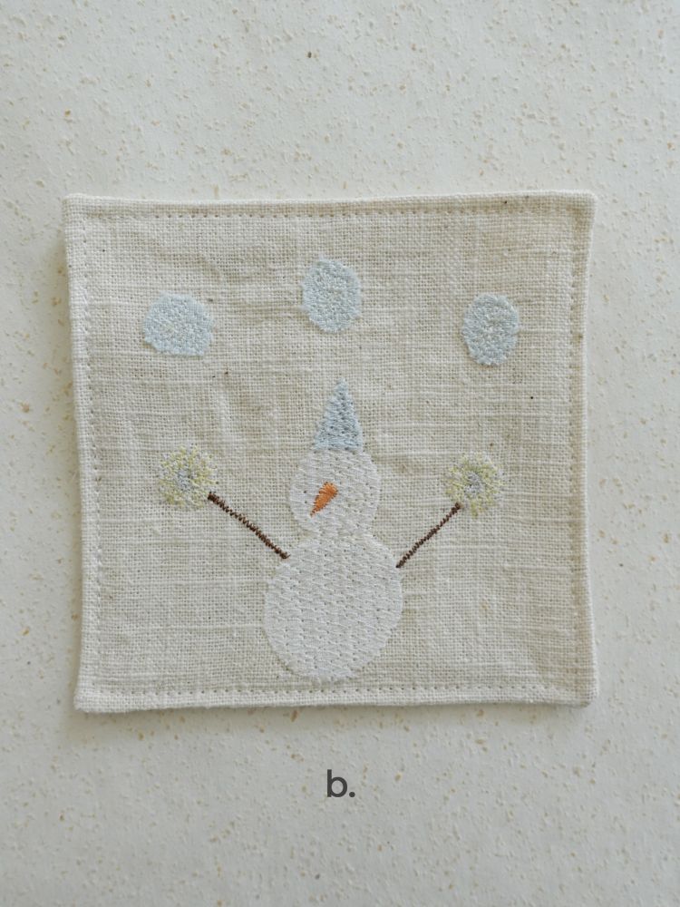 그런 ‘일상 속 텍스타일’을 통해 누구나 예술에 쉽게 닿기를 바랍니다.겨울의 의미를 담아 선물하기 좋은 자수 티코스터. 눈꽃송이, 눈사람, 겨울나무 등의 간결한 형태의 자수가 은은한 컬러감의 원단 위에 섬세하게 새겨져 있습니다.